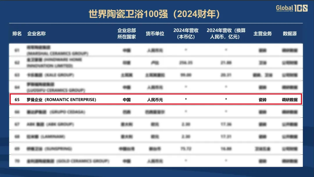 而對(duì)于再度入圍 “全球陶瓷衛(wèi)浴100強(qiáng)”并位列第65名,更標(biāo)志著羅曼締克瓷磚的品牌影響力與綜合實(shí)力已獲得國(guó)際范圍的關(guān)注與認(rèn)可,站上了與世界級(jí)品牌同臺(tái)競(jìng)技的舞臺(tái)。