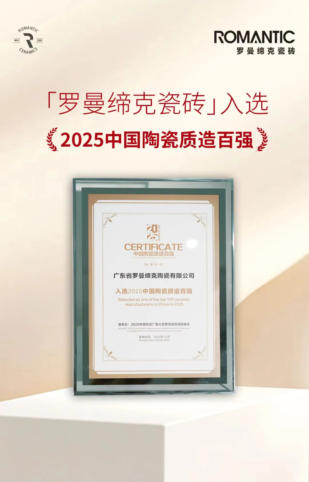 “2025中國(guó)陶瓷質(zhì)造百?gòu)?qiáng)” 則是對(duì)羅曼締克瓷磚在產(chǎn)品制造工藝、品質(zhì)把控、生產(chǎn)體系及可持續(xù)發(fā)展方面硬核實(shí)力的權(quán)威認(rèn)可,是其“匠心質(zhì)造”理念的完美體現(xiàn)。